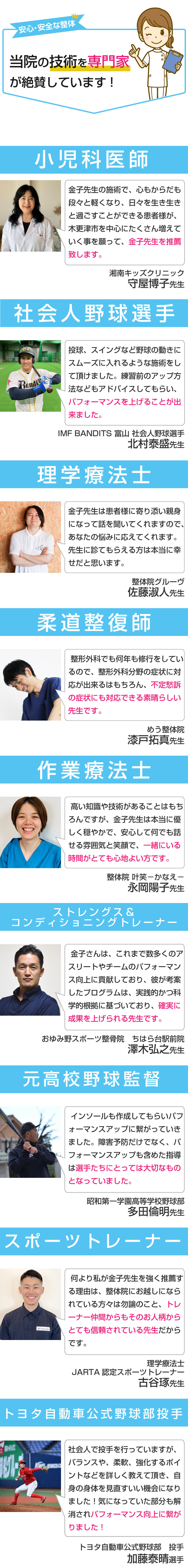 施術は自分の体が完璧になるまでやっていただいたり、細かいところまで分かりやすく説明してくれました。なので、これからも金子先生に教えてもらったことを活かし、パフォーマンスに繋げていきたいです!